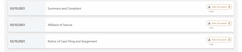 What happens if there is a lawsuit and you never got served? The first thing to do is look up the judgement and try to find something called the “affidavit of service.” You can find the case number on this website www.mncourts.gov just make sure to search by party, and not case! Then save the case number and search this second website. The second website lets you look at any document filed in the case. You want to find something called the “affidavit of service.” Here is a picture of the document.
